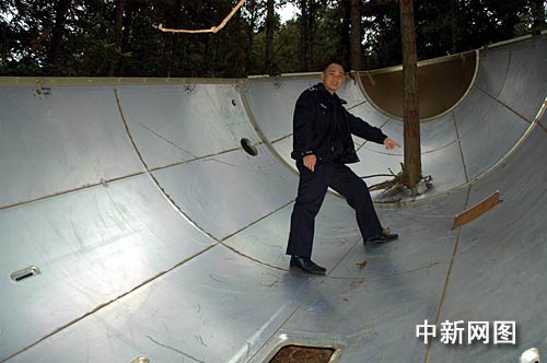 事發(fā)地點(diǎn)位于粵北車八嶺國家級自然保護(hù)轄區(qū)內(nèi),距離始興縣城約45公里。在保護(hù)區(qū)內(nèi)沿羅壩鎮(zhèn)大水村松樹坑村的方向步行半個(gè)多小時(shí),在高300米左右的半山腰,記者看到有一個(gè)金光閃閃的龐然大物仰臥在茂密樹林中,整體呈流線形,長約7米,直徑約為5米,外形仿似半截船,兩次經(jīng)過大氣的高溫高壓,乳白船體背面有密密麻麻呈蜂窩狀突起,多處呈現(xiàn)灼燒后的焦黃痕跡,以往整流罩上面清晰可見的“冷氦充氣手動(dòng)開關(guān)”和“常溫氦充氣手動(dòng)開關(guān)”等字樣在此次發(fā)現(xiàn)的整流罩上面沒有出現(xiàn)。