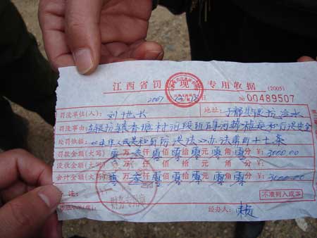 劉地長告訴記者,去年,于都縣水務局第一次來查采砂點時沒有罰款。去年12月18日,水務局開了一張3000元的罰單,說是采砂點阻礙河勢穩(wěn)定和堤壩安全。