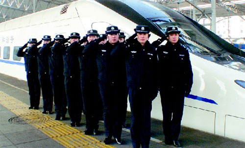 李鶴說(shuō),從1月3日起,就有6名女警登上了部分動(dòng)車(chē)組進(jìn)行了實(shí)驗(yàn),旅客們普遍感覺(jué)眼前一亮。當(dāng)好動(dòng)車(chē)組乘警不容易,每周她們都要接受?chē)?yán)格的培訓(xùn),包括服務(wù)禮儀、警容風(fēng)紀(jì)、處置突發(fā)事件等,還被派往沈陽(yáng)桃仙國(guó)際機(jī)場(chǎng)學(xué)習(xí)空中保衛(wèi)。英語(yǔ)測(cè)試、日常對(duì)話(huà)也必須過(guò)關(guān)。