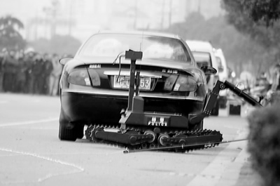下午4時(shí)多,大批民警將車子前后50米范圍內(nèi)進(jìn)行戒嚴(yán)。排爆人員穿上防爆服,檢查和調(diào)試排爆裝備后,匍匐著靠近別克轎車,觀察底盤,然后撤退。