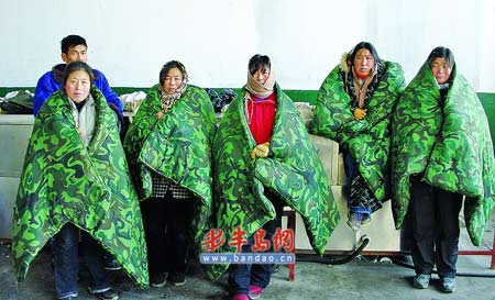 山東青島30多名欠薪農(nóng)民工身裹棉被討薪(圖)