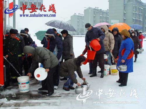 受暖濕氣流和冷空氣的共同影響,25日以來,安徽省銅陵市再次出現(xiàn)連續(xù)性強(qiáng)降雪,氣溫也繼續(xù)下降,最低達(dá)零下4℃,全市出現(xiàn)了長時(shí)間的凝凍天氣。從26日上午開始,市內(nèi)多條供水主管道相繼被凍結(jié)或爆裂,上萬居民陷入了無水可用的困境。銅陵市消防支隊(duì)及時(shí)啟動(dòng)了雨雪災(zāi)害搶險(xiǎn)救援應(yīng)急預(yù)案,先后出動(dòng)4輛消防車、20余名官兵,冒著大雪和嚴(yán)寒,往返于取水點(diǎn)與居民區(qū)之間,為居民們送來了12車、共70噸清水,解決了居民們的燃眉之急。