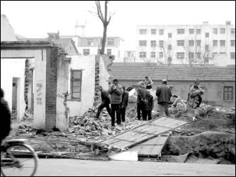 在縣城人民路和前進(jìn)路旁邊的兩個(gè)院落內(nèi),拆遷正在進(jìn)行中,一排排房子已經(jīng)夷為平地。但也有23處房屋因?yàn)橹魅藳]有簽字,還在廢墟中寂寞地堅(jiān)挺著。