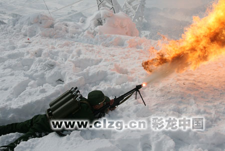 云南昭通武警用火焰噴射器為電力設(shè)施除冰(圖)