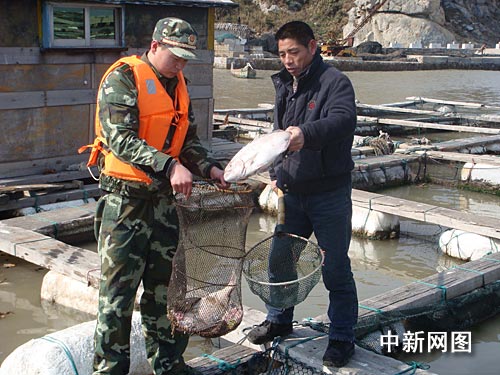 持續(xù)寒冷的天氣連魚也受不了,春節(jié)過后南麂島網(wǎng)箱里的養(yǎng)殖魚開始陸續(xù)出現(xiàn)凍死現(xiàn)象,魚排上漂浮著一條條被凍死的魚兒。災(zāi)情發(fā)生后,溫州邊防支隊(duì)南麂邊防派出所迅速組織官兵幫助漁民群眾清理打撈死魚,并及時(shí)將未凍死的魚轉(zhuǎn)移到溫室中進(jìn)行養(yǎng)殖,盡量降低災(zāi)害帶來的損失。