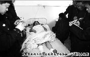 而在另外一間病房?jī)?nèi),鄖縣民工肖本憲氣憤地說:“為啥打個(gè)工,就這么難?”據(jù)醫(yī)護(hù)人員介紹,肖本憲昏迷了兩天兩夜,前日才蘇醒過來。肖本憲頭部被砍傷,縫了9針,身上多處骨折,很可能落下終身殘疾!八麄円娙司涂,不僅傷人,還砸壞我們的東西!”肖本憲講到悲憤處,掙扎著握緊了左拳。在他身旁的妻子則暗自垂淚,責(zé)怪他為何跑到千里之外的山西來打工,還差點(diǎn)搭上一條命。