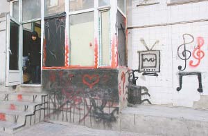 “那間屋子的窗戶上貼著黑紙,外墻壁上還噴畫著奇怪的圖案,寫著‘請勿偷看、男士禁入’的字樣!這間屋子挺恐怖!弊蛉障挛,有長春市民向本報(注:城市晚報)反映此事,記者采訪發(fā)現(xiàn),這間恐怖的屋子是挺奇怪,原來它是一個專門給女同性戀拍照的攝影棚。