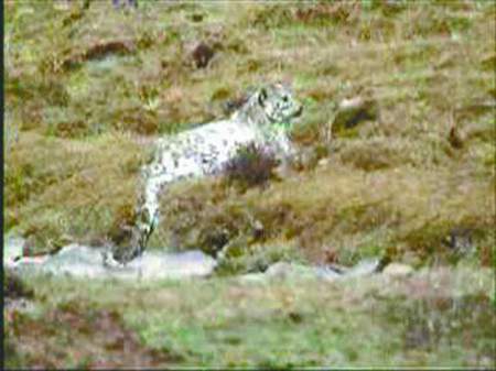 “我最后悔的是自己太激動(dòng)了,手在抖,所以效果一點(diǎn)也不好!庇浾咦蛉章(lián)系到拍攝者黃勇,他告訴記者,2007年10月8日,他作為甘孜州石渠縣農(nóng)林局副局長,正好在真達(dá)鄉(xiāng)下鄉(xiāng)。上午10時(shí),護(hù)林員牛林(藏語音譯)突然沖進(jìn)辦公室,語無倫次地報(bào)告說:“煞!煞(藏語雪豹名)……”原來,在真達(dá)鄉(xiāng)普馬村然所通(音譯,是當(dāng)?shù)夭孛竦倪h(yuǎn)牧點(diǎn),“通”在藏語里意為大壩、寬闊的谷地),連續(xù)幾天都有一只雪豹出沒。黃勇聽后十分興奮,吃過午飯,立即開車前往一探究竟,“有兩個(gè)喇嘛隨行,他們帶了一個(gè)家用DV,我?guī)Я艘粋(gè)普通的數(shù)碼相機(jī)!