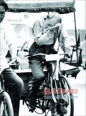 將物質(zhì)生活標(biāo)準(zhǔn)壓到最低點(diǎn)的老人,卻把能量釋放到最高度。一年365天,他沒歇過一天。他曾在夏季烈日的炙烤下,從三輪車上昏倒過去;他曾在冬天大雪滿地的路途中,摔到溝里;他曾因過度疲勞,蹬著車睡著了……由于年事過高,冬天里他常憋不住小便,棉褲總是濕漉漉的,他就墊上幾塊布照樣蹬車跑。