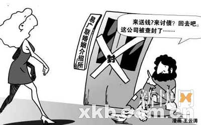 據悉,根據《公司法》、《公司登記管理條例》和《國務院辦公廳關于加強涉外婚姻介紹管理的通知》中關于嚴禁成立涉外婚姻介紹機構的規(guī)定,涉外婚姻介紹屬國家禁止經營的項目,經市工商管理部門認定,易廣聯婚姻咨詢有限公司涉外婚姻介紹屬非法經營,工商、公安等部門依法予以取締并查封,相關責任人也將面臨刑事拘留的處罰。 (吳璇堅 海宣)