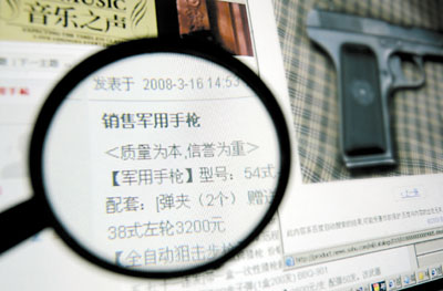 16日下午,海南一男子在重慶某網(wǎng)站發(fā)帖子,稱可以銷售各種型號(hào)的軍用手槍和全自動(dòng)狙擊步槍。重慶市公安局網(wǎng)監(jiān)管理處工作人員稱,已經(jīng)對(duì)此事備案,正在查處,提醒市民不要上當(dāng)。