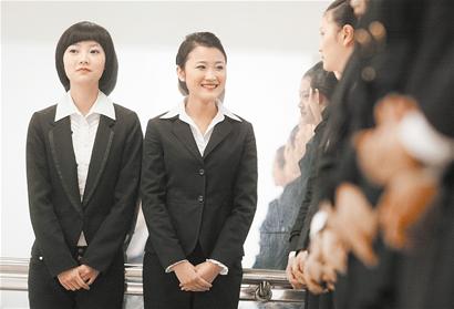 之前在外企工作的唐娜告訴記者,平常都是看到熟人時(shí)才笑,現(xiàn)在必須對視線范圍內(nèi)的每個(gè)人微笑,直到練成條件反射。而且要露出八顆牙齒,露少了不真誠,露多了不好看。很多同學(xué)都咬著筷子練習(xí),笑得臉都僵了。“國際標(biāo)準(zhǔn)微笑就是露出8顆牙齒,‘奧運(yùn)空乘’代表國家形象,你可以不用精通各國語言,但你可以用端莊大方的微笑展示我們的熱情!