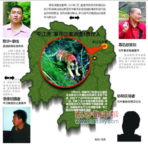 而根據(jù)官方公布的調(diào)查結(jié)果,2月,盛建華向縣旅游局長田共兵提出從長沙石燕湖公園運虎至石牛寨風(fēng)景區(qū)拍攝影像資料進(jìn)行商業(yè)炒作的想法,田共兵表示默認(rèn),并介紹平江電視臺記者吳華與其認(rèn)識。
