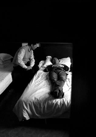 透過(guò)攝像機(jī)鏡頭,我們看到呂承諭正在房間內(nèi)為一名失眠患者做催眠治療。房間很安靜,燈光相當(dāng)柔和,這是一個(gè)非常好的睡眠環(huán)境。而房?jī)?nèi)的布置也很簡(jiǎn)單,除了一張柔軟床鋪外,最大的擺設(shè)物就要算櫥柜了。櫥柜里面放有類似懷表的水晶球、節(jié)拍器、沙漏和音樂(lè)播放機(jī)。而呂承諭正坐在床沿和閉目平躺的患者交流。