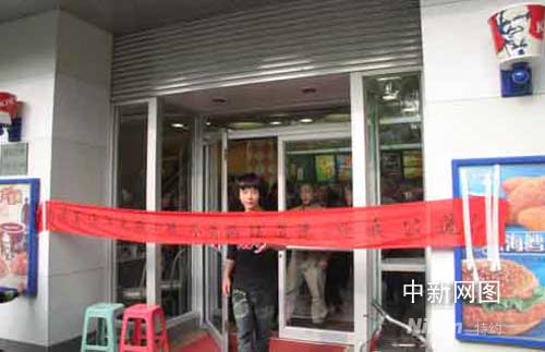 在派出所3次出警無(wú)效下,憤怒的陳女士做出了在肯德基店門口 拉橫幅攔顧客的舉動(dòng)。而肯德基方面更是以鎖住店門把陳女士連同當(dāng)時(shí)還在就餐的10幾名顧客一起困在了店堂里。時(shí)間長(zhǎng)達(dá)一個(gè)多小時(shí)。最后還是在圍觀群眾的憤怒聲中才打開店門。