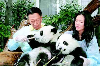 昨日上午,被譽為臺灣首富的臺灣富士康科技集團總裁郭臺銘一行,前往成都大熊貓繁育研究基地參觀,并出資600萬元,一次性終身認養(yǎng)三對大熊貓幼仔。這是成都大熊貓基地自1987年建立以來,收到的最大一筆大熊貓認養(yǎng)資金。