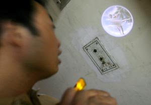近段時間以來,云南昆明街頭一些小賣部正在出售一種艷照打火機,這種火機與普通火機唯一不同的是,摁開側(cè)面的開關(guān),底部一個燈泡立即就亮了起來,令人吃驚的是,投影在地上的燈光中,不僅有一些裸體畫面,甚至還包括“艷照門”中的照片。