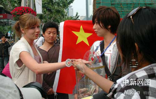今天下午,來自上海大學巴黎國際時裝藝術(shù)學院的大學生們第一時間自發(fā)聯(lián)系了上海市靜安區(qū)紅十字會,組織了一次主題為“以人道的名義,伸出您的援手”的大型募捐活動。下午3點,在上海市中心最繁華的商業(yè)區(qū)南京路,在“地震無情人有情,盼望好人獻愛心”的醒目橫幅下,上海大學巴黎藝術(shù)學院的百余名學生與來自法國,美國,德國,意大利的外籍教師共同走上街頭,為四川震區(qū)災(zāi)民奉獻愛心。