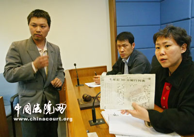 上午9:00,汪亮解在兩名代理律師的陪同下進(jìn)入法庭,國家體育總局體育彩票管理中心和北京市體育彩票管理中心的三位代理人也先后到庭應(yīng)訴。記者注意到,北京一中院民二庭的高平庭長(zhǎng)擔(dān)任此案的審判長(zhǎng),與一位人民陪審員和一位法官組成了合議庭。正式開庭審理前,王亮解小心地從懷中掏出中獎(jiǎng)的彩票和一張彩民周刊的剪報(bào)交給了代理律師,面對(duì)境頭,汪亮解有些局促,有記者想讓他說幾句,汪亮解用濃重的家鄉(xiāng)話說,他心里很亂,等會(huì)兒再說。