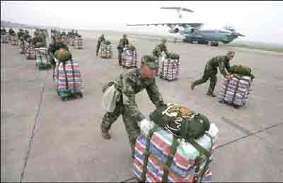 姚恒斌:我們指揮部由成空、空降兵和地方組成。每天晚上我們都要開(kāi)會(huì),總結(jié)一天的情況,根據(jù)各地物資的需求情況,確定第二天的空降任務(wù)。所有的救災(zāi)物資,通過(guò)四川省的民政部門(mén)統(tǒng)一輸送到我們這里,然后再統(tǒng)一調(diào)配。(記者 劉薇)