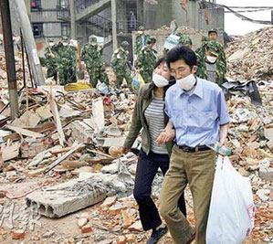 報(bào)道說,作為重災(zāi)區(qū)的綿竹,其受災(zāi)最嚴(yán)重的是漢旺鎮(zhèn),而漢旺鎮(zhèn)最多人被埋的地方即綿竹東汽中學(xué),該學(xué)校主樓一面墻和教室完全倒塌,只剩下幾個(gè)空架子。