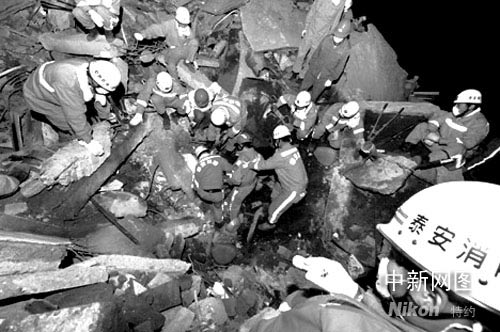 時間在一分一秒地流逝。坍塌的整棟樓房屬框架結(jié)構(gòu),消防官兵在實施救援的過程中,由于操作面小,整個生命通道就像一個手電筒,頭大腳小,開始可以由五個人同時作業(yè),慢慢地只能容三人作業(yè),后來只能由一個瘦小的戰(zhàn)士爬著向里掘,清理碎石和瓦礫。