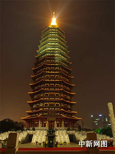 常州天寧寶塔通過(guò)燈光的變化,化身一支巨大的蠟燭,點(diǎn)亮星空