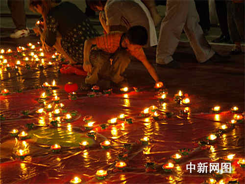 在為期三天的的祈;顒(dòng)中,來(lái)自四面八方的數(shù)萬(wàn)市民自發(fā)的手捧蓮花蠟燭,按佛教儀式捧燭繞塔為受災(zāi)的同胞消災(zāi)祈福。人們?cè)谔鞂帉毸,擺出一個(gè)又一個(gè)的心型圖案,為遇難的同胞祭祀,并紛紛為災(zāi)區(qū)捐款。