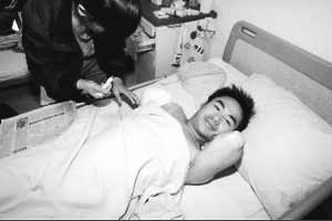 16日薛梟被轉(zhuǎn)到了華西醫(yī)院。由于右手臂傷情嚴重,同時感染了氣性壞疽,接受截肢手術。目前,薛梟已無生命危險,他托記者轉(zhuǎn)告所有關心他的人:“很感謝大家,我肯定會好起來,我會試著用左手干很多事情,我還要考大學”。(饒穎 柯娟/文 陳蒙川/攝)