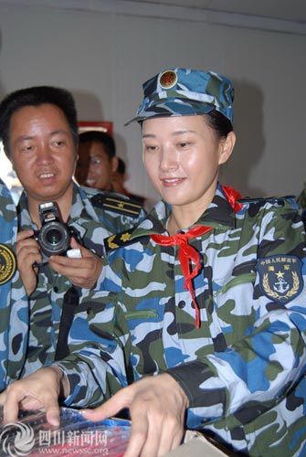海軍少將宋祖英赴四川綿竹和小學(xué)生過(guò)兒童節(jié)(圖)(2)