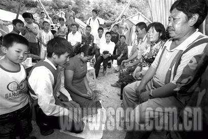 既然要結(jié)婚,就應(yīng)有一頂帳篷作洞房。王小波所在雙河村黃巖組的干部5月31日趕緊去找?guī)づ瘛5襾碚胰,最后只找到一頂白色帳篷?/p>