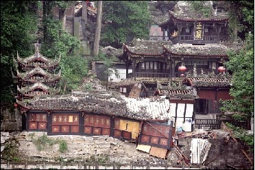 二王廟內(nèi)遍地瓦礫,已無可立足。周川好站在廢墟上,呆呆地看著山下轟鳴的岷江。