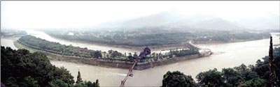 千年以來,離堆前的江口處漸漸形成了一座城市。城市以離堆為中心呈扇形分布。無論是草廬泥舍,還是后來的高樓廣廈,都像跪拜的臣子,面向離堆,祭祀征服自然的奇跡。千年以后,這座城市叫做都江堰。