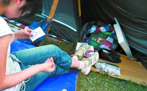 唐家山上的“一盆兒水”鬧得下游綿陽城的居民紛紛抱著家當(dāng)上了山!氨尘x鄉(xiāng)”本是件“苦活兒”,但什么事兒到了天性豁達(dá)的四川人那里,卻總能找出樂子來。