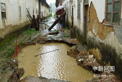 據(jù)村民反映,地面塌陷是從6月9日下午3點(diǎn)多鐘開(kāi)始的,在村民劉細(xì)梅和劉河柱的家門(mén)前地面先出現(xiàn)一個(gè)小坑,后來(lái)逐漸變大變深。由于地面塌陷引起涉及5戶村民共8間民房受損,墻壁出現(xiàn)裂縫,大的裂縫約5厘米寬,一些房屋門(mén)窗嚴(yán)重變型,墻壁表層脫落,房門(mén)無(wú)法打開(kāi),有的房間村民用東西敲擊地板時(shí),地面顫動(dòng),有地下空洞的感覺(jué)。