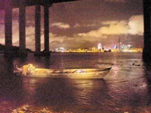 事發(fā)當(dāng)日晚7時(shí)20分左右,廣東邊防總隊(duì)第五支隊(duì)兩名執(zhí)勤哨兵在距離澳門葡京賭場(chǎng)只有一水之隔的珠澳邊防線上巡邏時(shí),發(fā)現(xiàn)橫琴大橋底下一名男子撐著一條小木船正慢慢地向澳門方向劃去,形跡可疑。