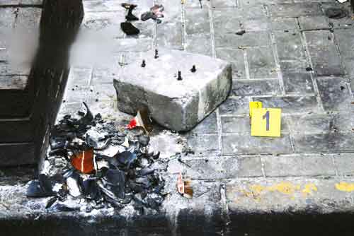 經(jīng)警方初步偵查,犯罪嫌疑人楊某,男,28歲,北京市人。當天上午,楊某攜帶匕首、榔頭、噴霧劑、防塵面具等,在閘北區(qū)一綜合行政辦公大樓門口先點燃并拋投了8個用啤酒瓶自制的燃燒瓶,大門保安看到后迅速上前制止,遭楊威脅并被其用攜帶的匕首刺傷。隨后,楊即竄入辦公大樓,在底樓大廳和閘北公安分局治安支隊值班室用匕首刺傷4名正在辦公不及防備的民警。之后,楊又先后竄至10樓、11樓和21樓,在幾個不同的房間內(nèi)趁民警不備,用匕首刺傷5名民警。閘北