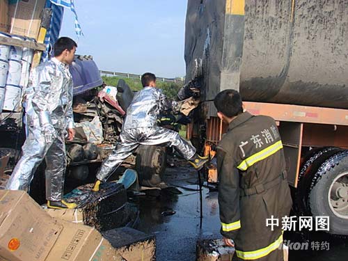 中新網(wǎng)韶關(guān)7月3日電(馮昶 李凌 鄭忠輝 鄭澤煌) 7月2日,京珠高速公路廣東韶關(guān)曲江服務(wù)區(qū)內(nèi)發(fā)生一起交通意外,導(dǎo)致裝有瀝青的槽罐車發(fā)生泄漏。當(dāng)?shù)叵、交警、安監(jiān)、環(huán)保、醫(yī)護(hù)等部門接報(bào)后迅速趕到現(xiàn)場(chǎng)處置。