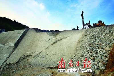 到昨天傍晚發(fā)稿時止,廣州市防總已按省防總要求,組織爆破公司14名工人,1臺大型鉆機、4臺小型鉆機已到達現(xiàn)場(見上圖,王亮攝)。目前施工通道已經(jīng)修復,正在做好爆破前的準備工作。目前,廣東省防總以及市現(xiàn)場督導組等有關專家,已經(jīng)進入現(xiàn)場與爆破公司研究分析具體爆破方案,督導爆破方案實施。