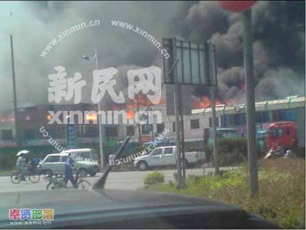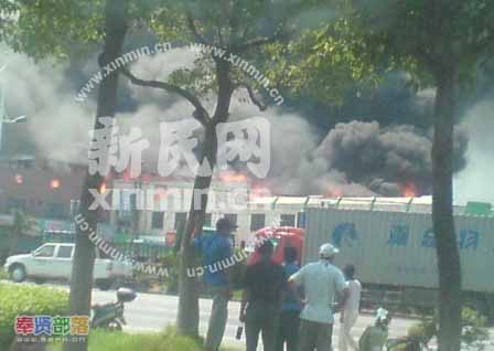 2008年7月17日下午2點30分,新民網(wǎng)接到網(wǎng)友報料稱,奉賢區(qū)齊賢鎮(zhèn)有工廠大火,預(yù)計損失2億,現(xiàn)有50多輛消防車到場。新民網(wǎng)記者電話連線網(wǎng)友楊先生,楊先生稱現(xiàn)場就像原子彈爆炸一樣,天空全黑了。