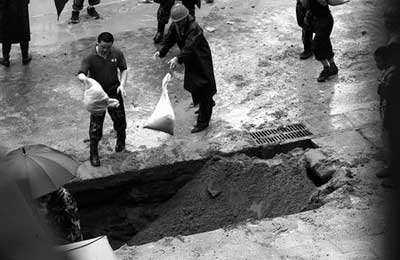 對(duì)工程方迅速用混凝土填埋深坑的做法,他說(shuō),這樣不妥!叭绻巡槊魇鹿试颍瑧(yīng)及時(shí)排除故障,然后再填埋。沒(méi)有查明原因,就封填坑口,會(huì)給以后的工作帶來(lái)不便!薄跻(jiàn)習(xí)記者魏浩文記者洪波圖