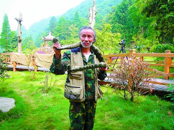 至今,他的左手中指只剩下最下面一節(jié),那是2003年一條莽山烙鐵頭蛇送給他的“禮物”。當(dāng)年8月,陳遠(yuǎn)輝將人工孵化的莽山烙鐵頭蛇拿到“鬼王寨” 放生。一條蛇在身體接觸地面后,突然轉(zhuǎn)過(guò)頭來(lái),狠狠地咬住了陳遠(yuǎn)輝的左手中指。為了拍攝到蛇咬人的珍貴鏡頭,陳遠(yuǎn)輝竟用右手拿著DV拍了近5分鐘才將蛇甩開(kāi)。(特派記者 劉軍)