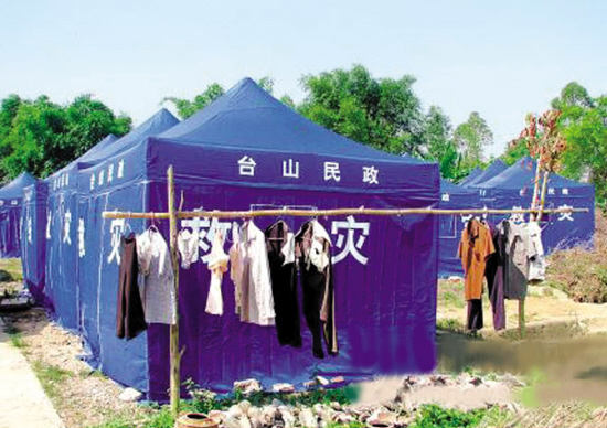 (廣東省)臺(tái)山市那扶鎮(zhèn)圍仔腳村、長(zhǎng)邊村等多條村莊自從上月8日起陸續(xù)發(fā)生地陷,造成村民房屋倒塌,導(dǎo)致9條自然村245間民房出現(xiàn)不同程度的裂縫,63處地陷,地表裂縫19處,水井干涸。江門市及臺(tái)山市民政部門已及時(shí)讓受災(zāi)村民住進(jìn)救災(zāi)帳篷里!