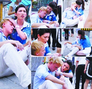 8月11日,一位網(wǎng)友在某論壇里發(fā)了個(gè)名為《我拍到最美的奧運(yùn)志愿者美眉》的帖子,并附有多張現(xiàn)場(chǎng)照片。發(fā)帖人描述說(shuō):當(dāng)時(shí)一金發(fā)碧眼的老外走得挺慢,我沒(méi)怎么注意。一回頭那老外坐地下了,耷拉著個(gè)腦袋。旁人圍了過(guò)來(lái),議論說(shuō)可能是中暑了,這會(huì)兒過(guò)來(lái)一漂亮美眉,還是個(gè)奧運(yùn)志愿者,又是摸頭又是詢問(wèn)的。老外當(dāng)時(shí)瞳孔放大,很嚇人的樣子!美眉看樣子也有點(diǎn)發(fā)懵,不過(guò)很快就指揮大伙打電話什么的……周圍還有人拿出風(fēng)油精,附近飯館經(jīng)理服務(wù)員全來(lái)了,還幫忙倒水。那志愿者美眉,我估計(jì)還有點(diǎn)兒經(jīng)驗(yàn),又掐人中又揉太陽(yáng)穴地折騰半天,可把她急壞了……隨后志愿者美眉用英文問(wèn)清老外的住址后要送老外回去,估計(jì)怕老外走半道再犯了啥的,旁邊大家都夸她,人家還挺低調(diào)扶著老外就走了。