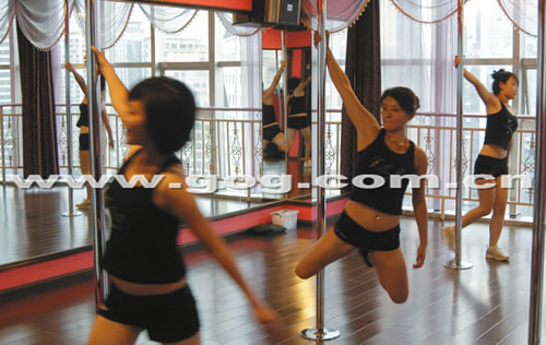 9月2日,夜幕降臨,位于貴陽市噴水池某大廈的鋼管舞訓(xùn)練房?jī)?nèi),強(qiáng)勁的音樂響起,燈光閃爍,5名身穿超短裙的女青年在教練指導(dǎo)下,圍著一根鋼管上下左右的翻轉(zhuǎn),她們跳的是——鋼管舞。
