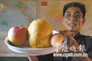 從雞肚子里掏出一個(gè)重0.6公斤的大“金蛋”。(圖片來源:重慶晚報(bào))