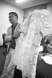 此外,川大華西醫(yī)院還將近百件抗震救災(zāi)醫(yī)療隊(duì)的服裝等進(jìn)行了捐贈(zèng),其中包括來(lái)自黑龍江、江西、北京等20多個(gè)省市。廖志林表示,地震后有30多個(gè)醫(yī)療隊(duì)進(jìn)駐華西醫(yī)院醫(yī)治傷員,這次從全國(guó)各地郵寄而來(lái)的醫(yī)療服,是通過(guò)書信號(hào)召他們捐贈(zèng)出來(lái)的,希望建川博物館能全面展現(xiàn)抗震救災(zāi)過(guò)程中各方面眾志成城的場(chǎng)景,目前已收集完成了20多個(gè)醫(yī)療隊(duì)的相關(guān)物品!耙患奈镆粋(gè)故事,我們?cè)谧龅卣鸩┪镳^的時(shí)候更注重收藏感動(dòng)人心的背后故事!焙涡掠卤硎,薛梟的故事讓無(wú)數(shù)的中國(guó)人記住了他,博物館收藏其簽名的可樂(lè)罐主要是希望為參觀者呈現(xiàn)一個(gè)不可磨滅的記憶,就像給妻子最后尊嚴(yán)的摩托車、為搭板房勞累而犧牲的武文斌的雕像一樣。博物館一直想尋找的是那些飽含故事的實(shí)物,“電視上不是說(shuō),有位媽媽為保護(hù)自己的孩子不幸遇難,她在手機(jī)上留下了‘親愛(ài)的寶貝,如果你還活著,請(qǐng)記住媽媽愛(ài)你’的短信,但苦苦尋覓這部手機(jī),都沒(méi)有結(jié)果。讓我們非常遺憾。”