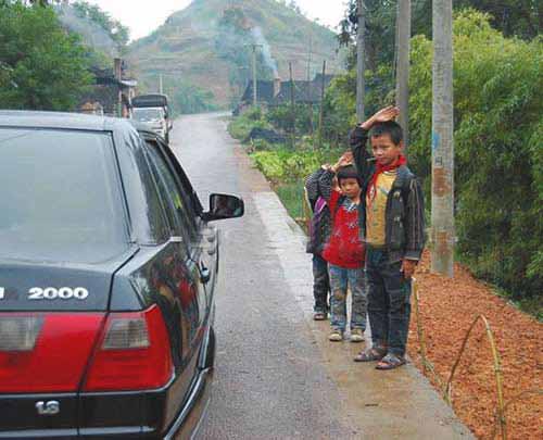 《貴州都市報(bào)》記者日前驅(qū)車(chē)路過(guò)黃平縣浪洞鄉(xiāng)松洞小學(xué),3名在路上行走的小學(xué)生見(jiàn)到車(chē)輛立即停下了腳步,并且雙腳并攏,行了一個(gè)莊嚴(yán)的少先隊(duì)隊(duì)禮;10分鐘后,記者一行又遇見(jiàn)了3名中學(xué)生,他們見(jiàn)到車(chē)輛也主動(dòng)停下腳步敬禮,這些學(xué)生說(shuō)“入學(xué)的時(shí)候?qū)W校就要求我們這樣做,現(xiàn)在都成習(xí)慣了”。