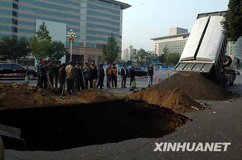 塌陷地段長約5到6米、深10米左右,緊鄰北京地鐵1號線和正在建設(shè)中的地鐵4號線。據(jù)北京地鐵公司介紹,這次路面塌陷與地鐵4號線的施工并沒有直接關(guān)系,也不會對地鐵1號線的運行產(chǎn)生影響。