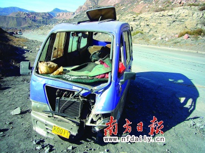 昨日上午,本報記者實地踏訪事發(fā)周邊區(qū)域。山被炸開的痕跡白花花地暴露在烈日之下。山腳之下,丁學(xué)聰老漢的院子落滿了“石頭雨”,院子里的碎石整整裝了2車手扶拖拉機(jī),還沒有清理完。他的33間房子被砸毀20余間,老漢欲哭無淚。就在他的鐵板房內(nèi),何老漢被砸破屋頂?shù)氖^砸到腰間,當(dāng)場死亡。大院的外邊,兩顆兩個籃球大小的石頭將堅硬的地面砸出兩個深坑。